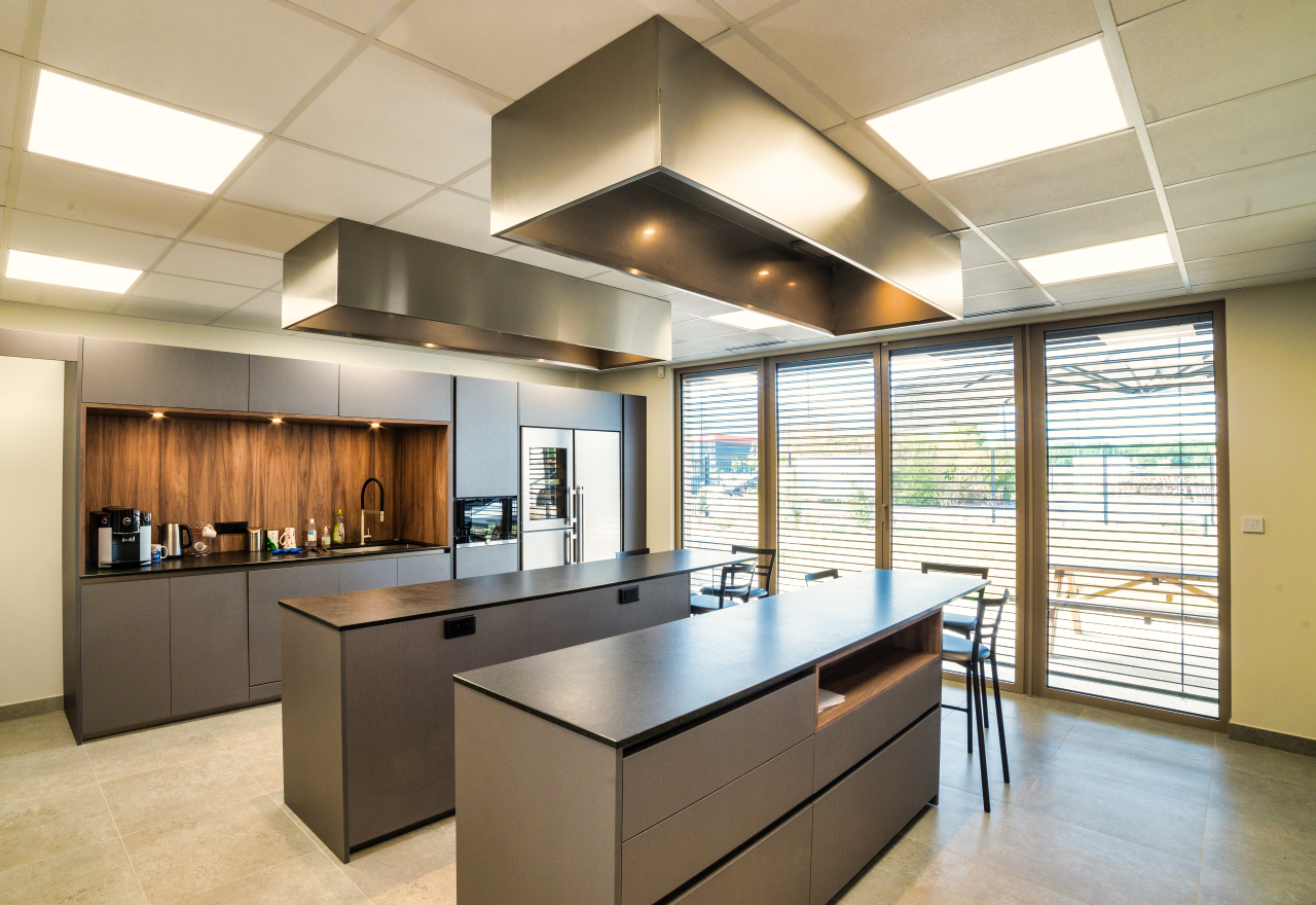 De la conception à la réalisation des aménagements extérieurs et intérieurs, FL660 a collaboré en étroit partenariat avec le personnel pour une optimisation du bien-être et des performances au travail : gestion des flux de circulation, réflexion portée sur une ergonomie personnalisée de chaque poste mais aussi par la création d’espaces communs, d’une cuisine laboratoire, d’une salle de détente, … et même d’un terrain de pétanque !